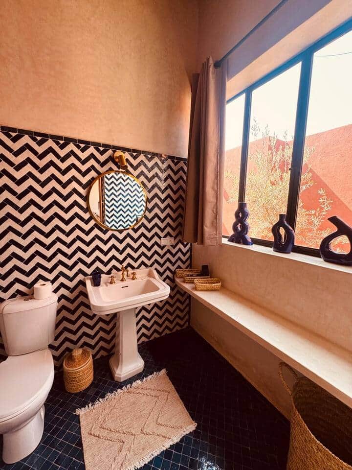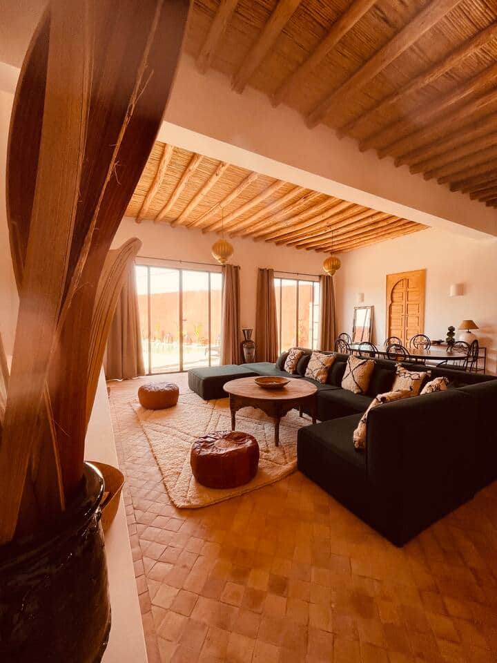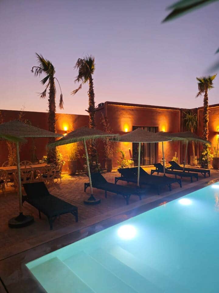Dar Tal se situe dans un petit village authentique et paisible La maison dispose de 4 chambres confortables avec salles de bains privatives, dont 2 chambres indépendantes, parfaites pour plus d’intimité. Profitez d’une terrasse conviviale et d’une piscine privée sans vis à vis pour vous détendre tout au long de la journée. Cette maison est parfaite pour les familles, les groupes d’amis ou les couples à la recherche de calme, d’authenticité et d’expériences uniques dans la région de Marrakech. Bienvenue dans cette villa neuve, construite en 2024, où tout a été pensé pour votre confort. Chaque équipement est récent, pour un séjour sans compromis. Profitez d’un vaste salon baigné de lumière, d’une superbe hauteur sous plafond et de quatre grandes chambres, chacune disposant de sa propre salle de bain. Toutes les pièces sont climatisées pour un confort optimal en toute saison. Le salon offre un espace chaleureux avec cheminée fonctionnelle, coin repas et cuisine ouverte entièrement équipée – idéale pour cuisiner ou partager de bons moments en famille. La suite parentale et la chambre des enfants s’ouvrent sur un patio privé, parfait pour savourer un petit-déjeuner au soleil, lire en toute tranquillité ou faire un peu d’exercice. La décoration marie avec goût l’élégance du style marocain et une touche de modernité, pour une ambiance raffinée et accueillante. À l’extérieur, la piscine vous invite à la détente durant les chaudes journées d’été (non chauffée en hiver). Profitez des transats à l’ombre ou au soleil, selon vos envies, ou retrouvez-vous autour du salon de jardin pour des moments conviviaux. Et pour une expérience encore plus agréable, vous pouvez faire appel à une cuisinière locale qui vous préparera de délicieux repas (30€/repas + prix des courses). L’intégralité du logement est accessible aux voyageurs. Attention, nous n’acceptons pas les couples marocains non mariés. Notre équipe est disponible par téléphone, par message ou via les applications de messageries. Sur simple demande, nous pouvons organiser vos transferts depuis l’aéroport (25€/trajet) ainsi que vos déplacements vers le centre-ville (20€/trajet), pour un séjour sans stress dès votre arrivée. Marrakech regorge de trésors à découvrir : activités culturelles, escapades dans le désert, ateliers artisanaux, jardins secrets… Nous serons ravis de vous aider à organiser des expériences personnalisées, selon vos envies. N’hésitez pas à nous solliciter : nous sommes là pour rendre votre séjour inoubliable.
